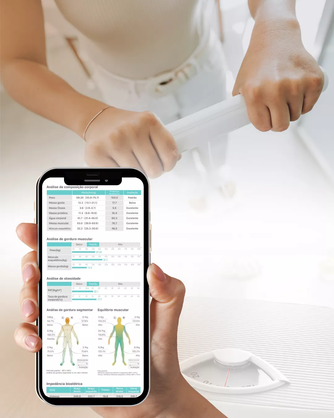 Avaliação completa que analisa a composição corporal: massa muscular, gordura, água e metabolismo para entender o que seu corpo realmente precisa.